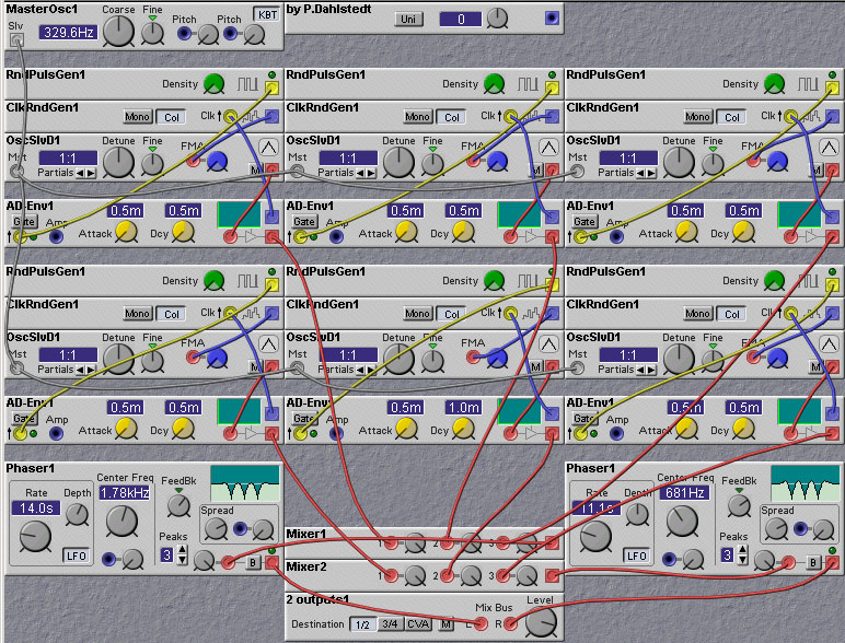 Figure 2.19. A Granular synthesis patch (P. Dahlstedt).