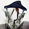 This passive hand controller has the property that if one translates the handle, then it creates no torques and hence translates parallel to itself. Conversely, if one rotates it about the center of the handle then it creates no force and hence rotates without translation. It's a standard isostatic platform with six spring loaded legs but with a special geometry. This hand controller is for controlling robots or virtual proxies in rate mode. For details, see publication 19J.