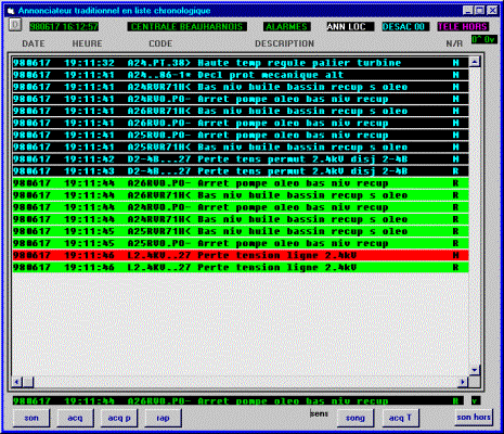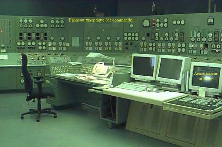 Power plant control room (circa 1995). The annunciator is on the monitor at