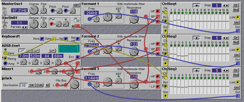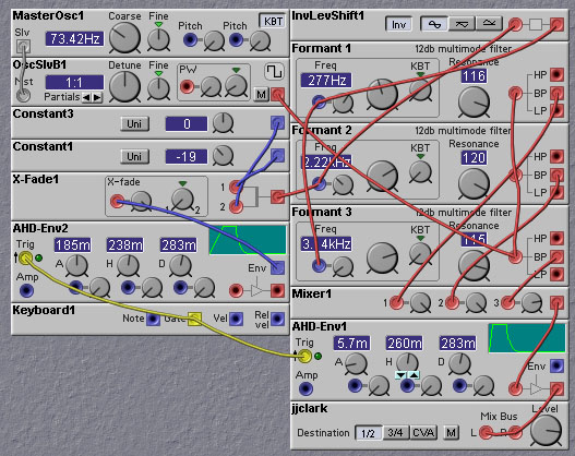 Now you have most of what you need to make the Nord Modular say what you want (you might also want to find some tables of formant frequencies for the various vowels, these can be found on the net or in the library). You should tweak the formant frequencies, bandwidths, and envelope time constants to obtain just the sound you are looking for.