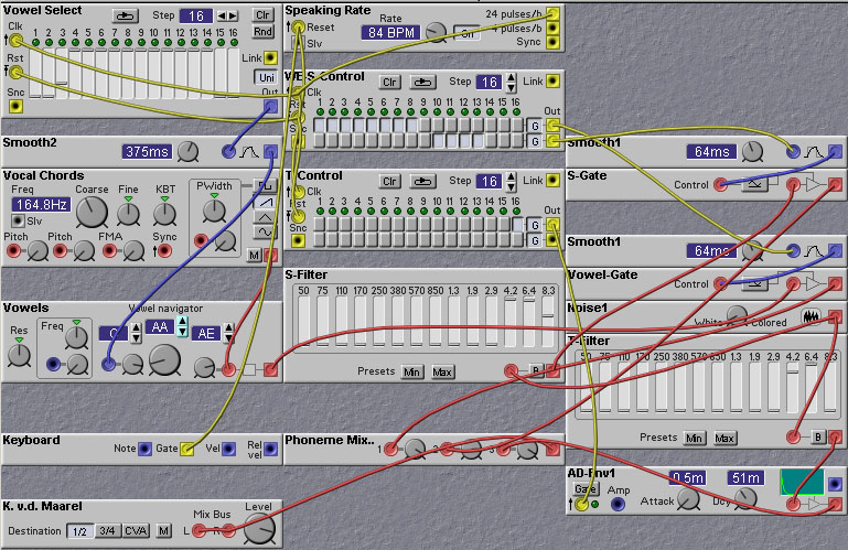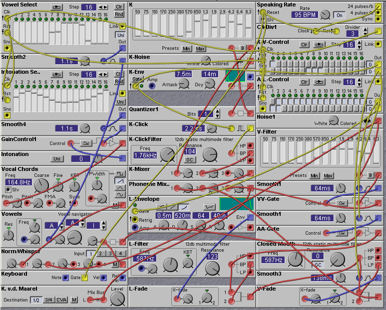The following patches (by Kees van der Maarel) give examples of implementing various long utterances with the Nord Modular, combining vowels, semivowels, and consonants.