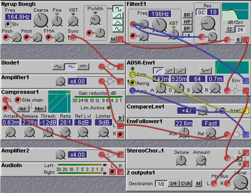 Figure 8.2. A vocoder patch made from the Nord Modular vocoder module.